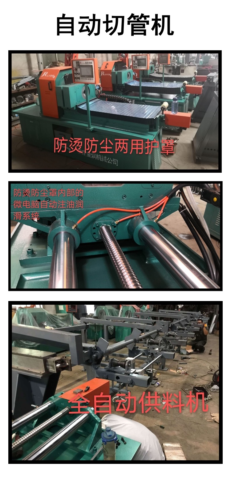 五、送料定尺用精密滾珠絲桿和導(dǎo)程用圓軌上配有防燙防塵護(hù)罩,避免切削下來(lái)的鐵屑或被切割的鋼管上的鐵銹掉落到精密絲桿和導(dǎo)程圓軌上縮短使用壽命。